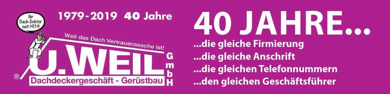 Im Alter von 22 Jahren hat Ulrich Weil am 22.05.1979 seine Meisterprüfung abgelegt. Am 1. Juni 1979 wurde er in die Handwerksrolle eingetragen und hat sein Geschäft gegründet. Ulrich Weil war damals Deutschlands jüngster Dachdeckermeister, der sich selbstständig gemacht hat.